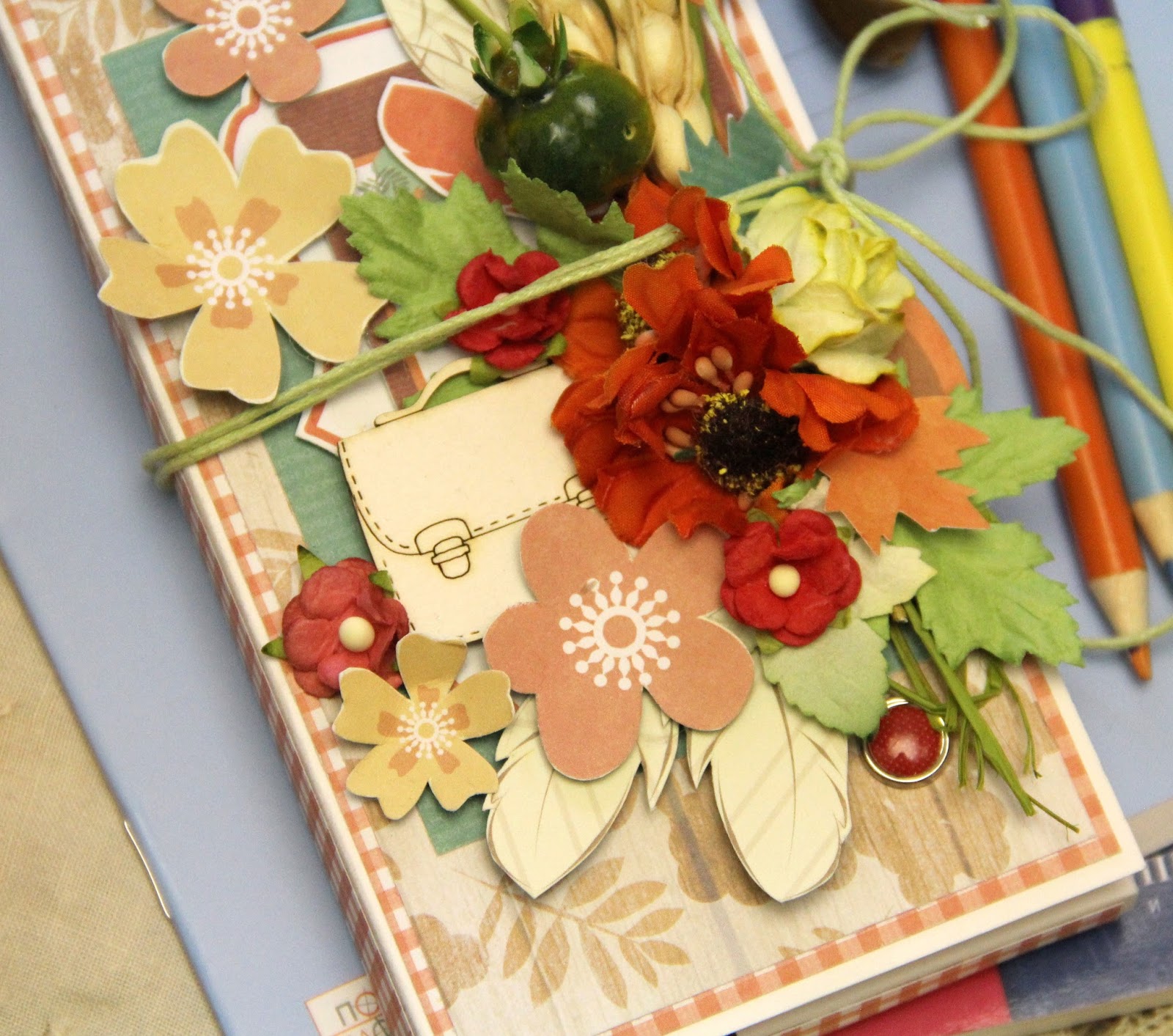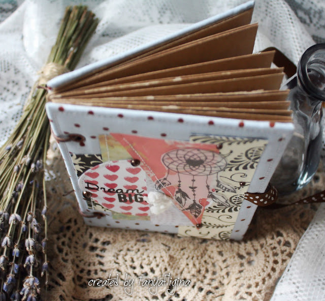По нашему скетчу у меня получился мини альбомчик 10*15 с крафтовыми страничками , можно использовать как блокнотик)