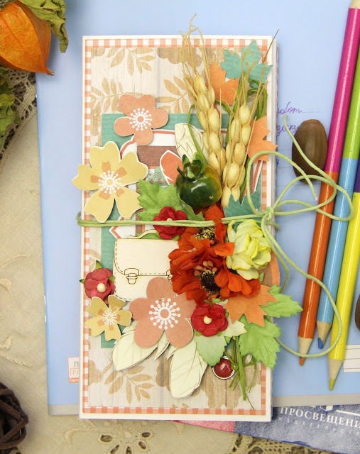 Использовала: чипборд от арт просвета, бумагу scrapberrys, цветы, вырубку и кружево.