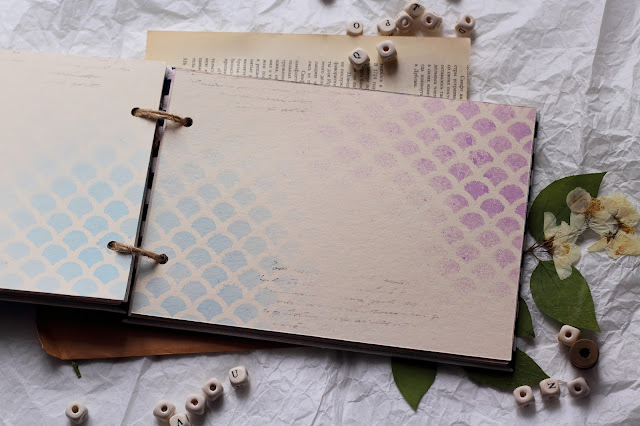 Внутри странички из кремовой пастельной бумаги, которые оформлены при
