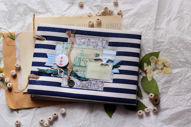 Этот рецепт я решила использовать при оформлении одного из альбомов, которые я уже сделала в весьма большом количестве для сети отелей. Из ОЭ у меня использованы морской обитатель - чайка и звезды (чип-звезда на лицевой стороне и деревянные звезды-пуговицы сзади).
