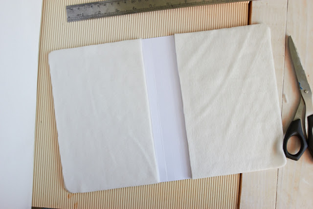 На обложку приклеиваем флис или синтепон. Теперь давайте соединим корешок и обложку.